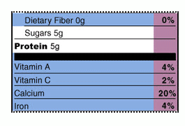 | This part lets you zero in on key nutrients we all need. First is fiber. Then look below the black bar for vitamins, and two things that young people really need—calcium (for bones) and iron (for muscles and blood).What matters here? Are the foods you eat delivering 100% of the fiber, vitamins, calcium, and iron you need? Remember that foods without labels (like fresh fruits and veggies) count too! |